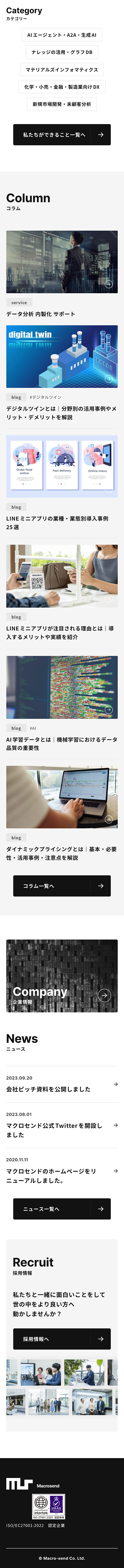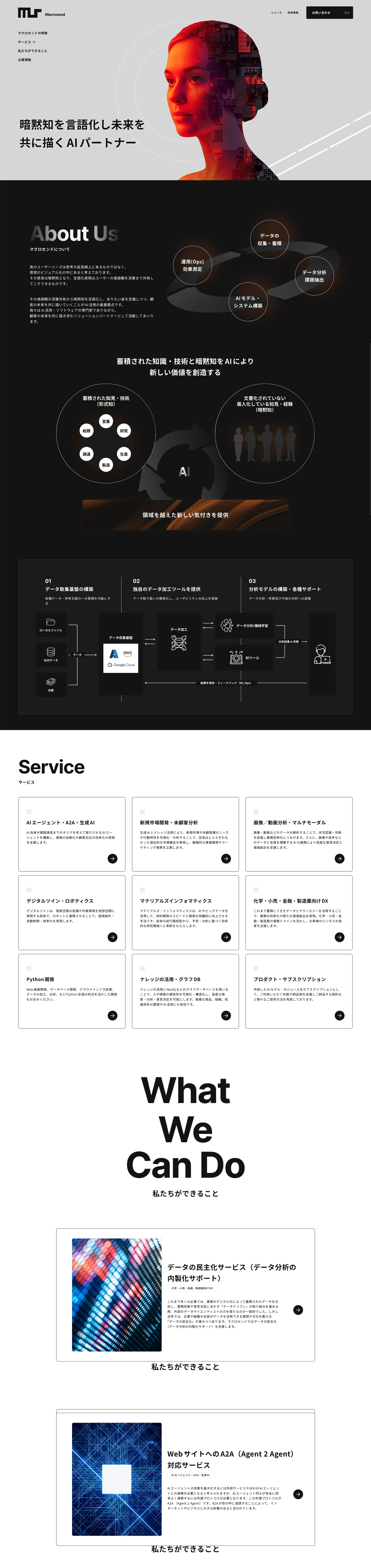 AI全般・クラウドシステム・データ分析(BI含む)・DXコンサルに強い株式会社マクロセンド様のコーポレートサイトを担当いたしました!